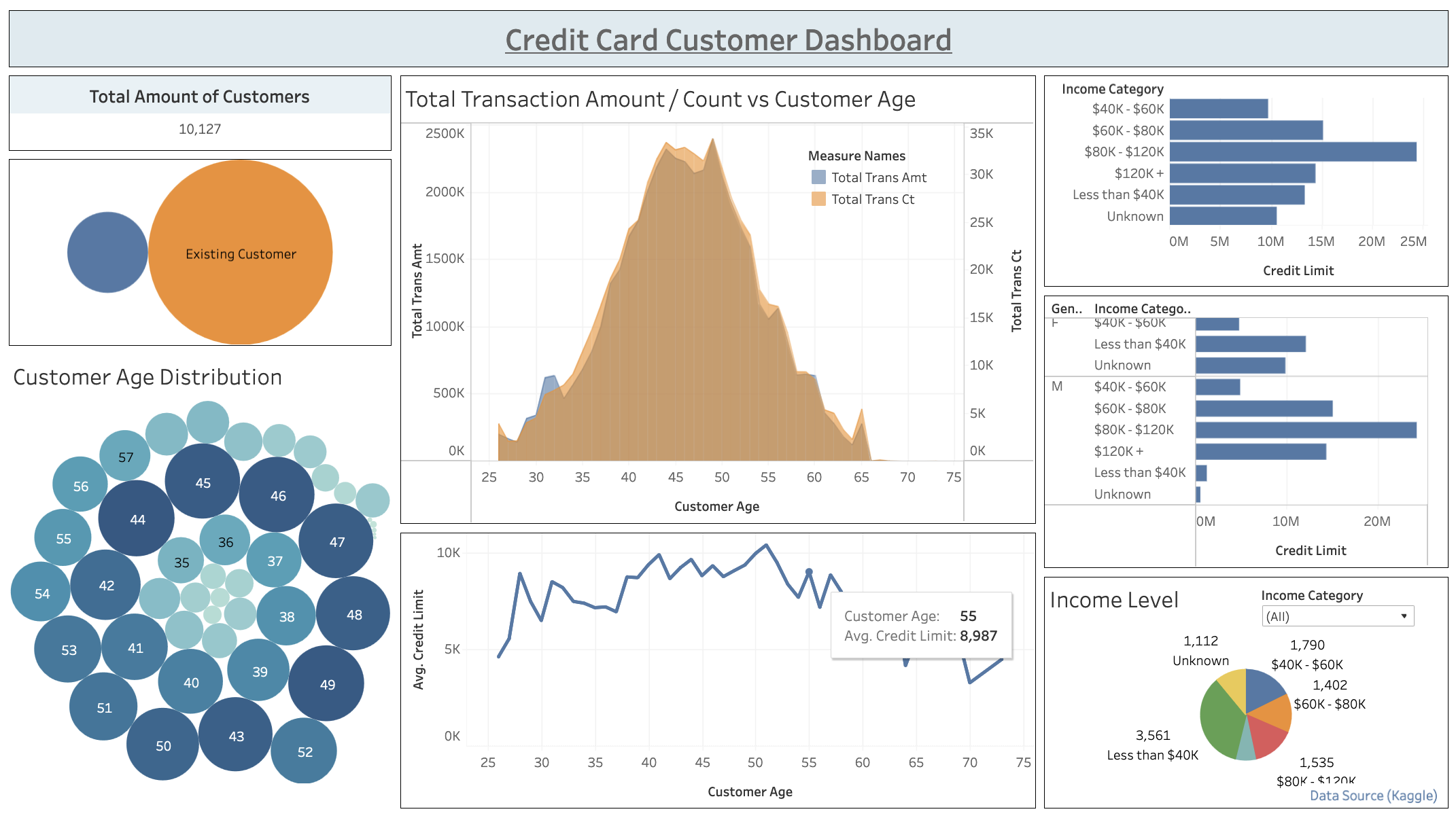 Another Tableau dashboard with credit card customer data from Kaggle.