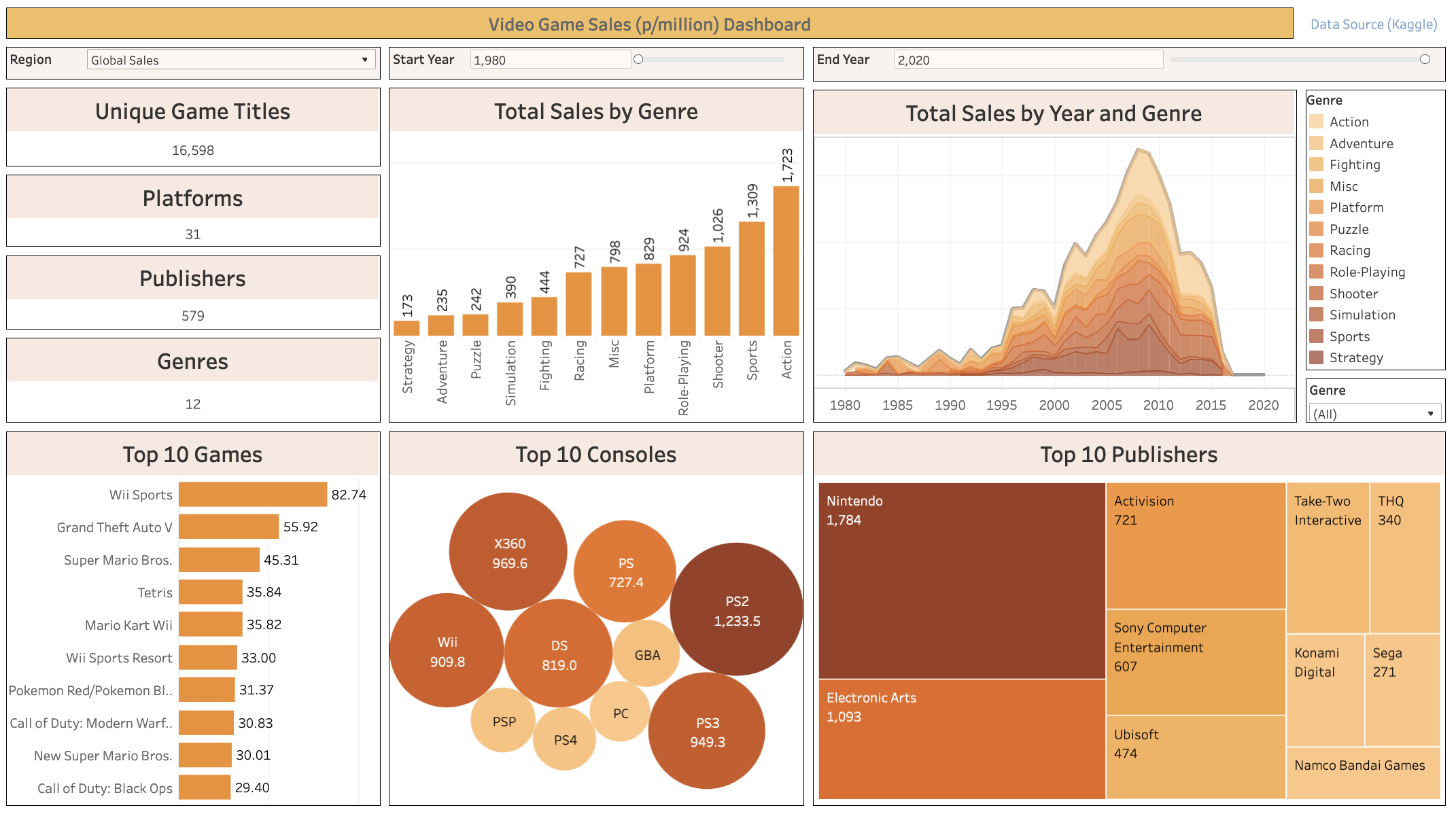 The third Tableau dashboard on Video Game sales data, with various filter functions.