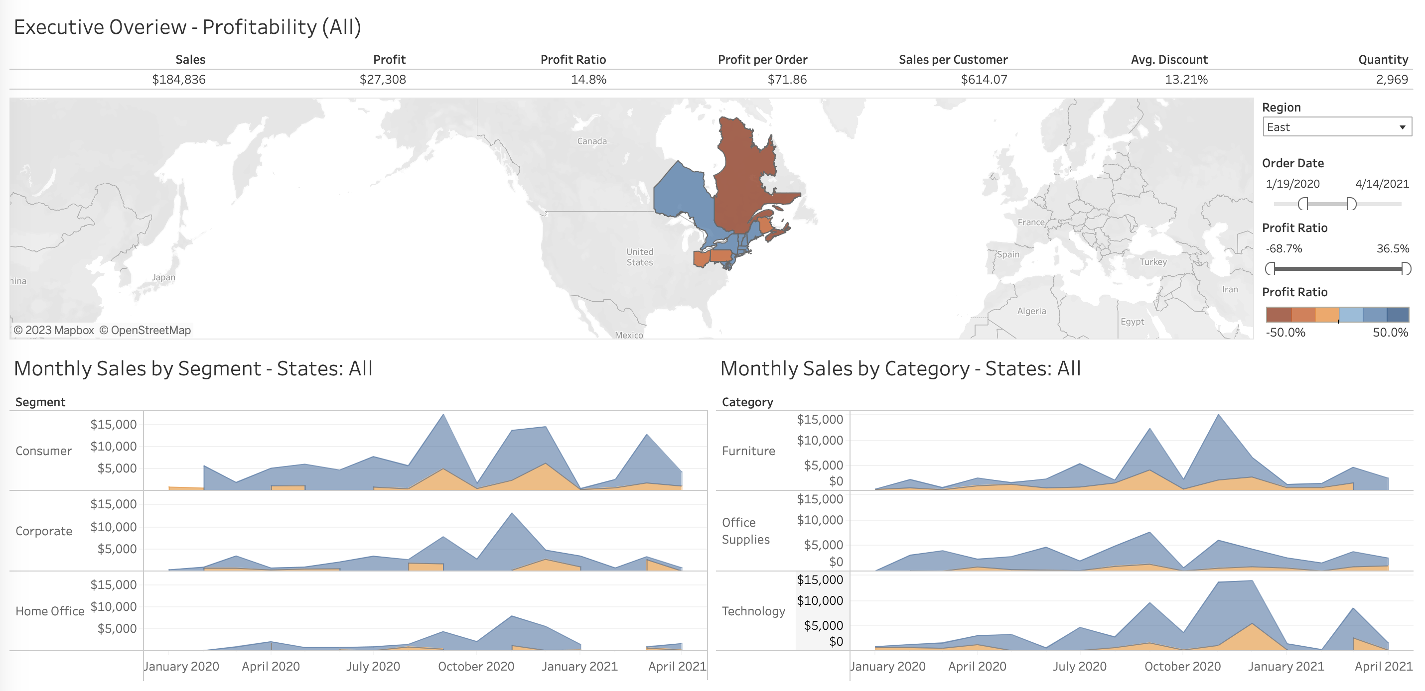 Simple dashboard from Tableau Public sample data.