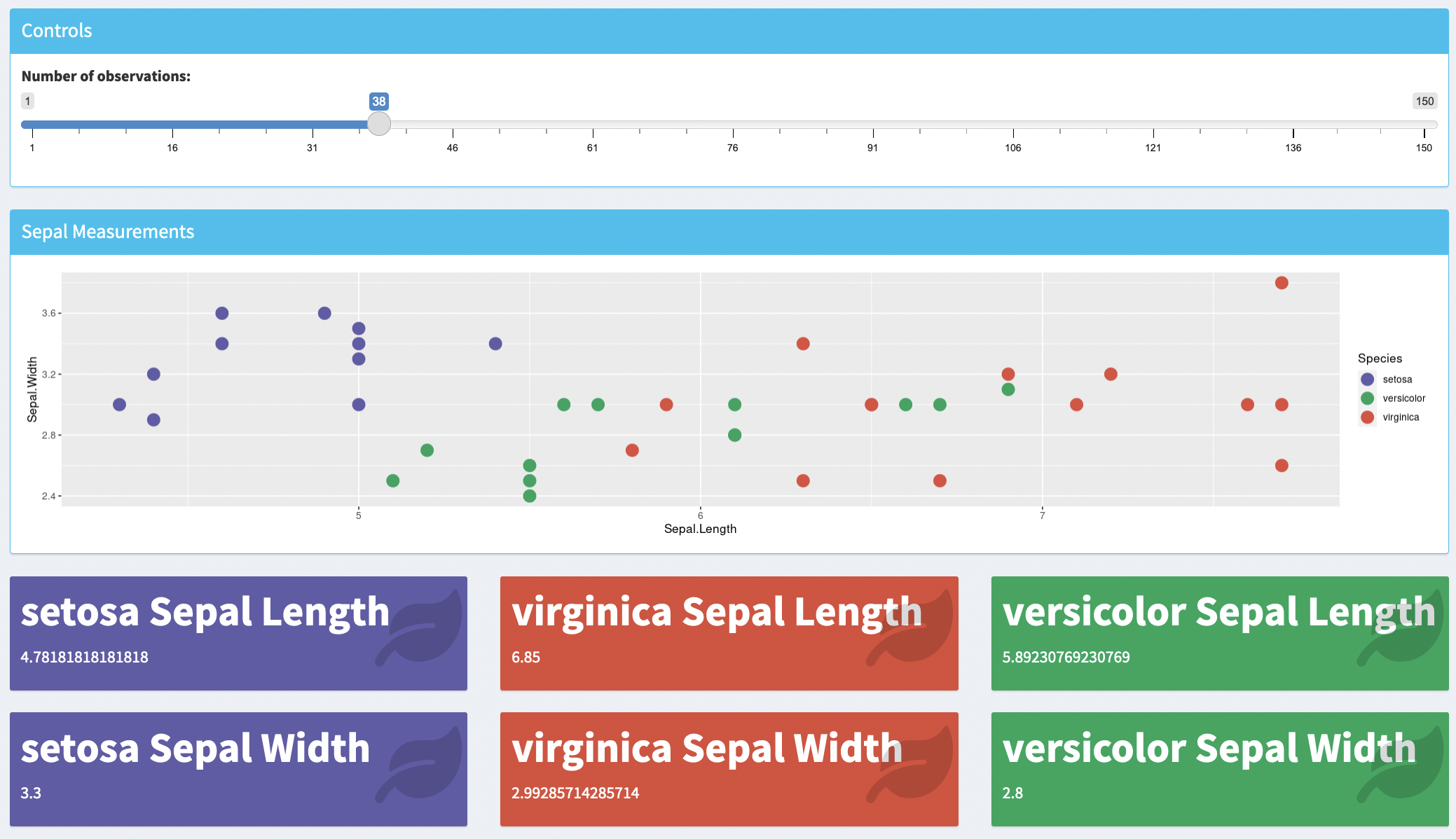 Sample dashboard done in R-Shinny of classic classification data of Iris species.